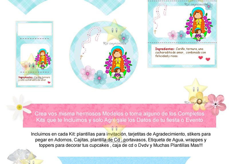 Kit Imprimilble Invitaciones De Virgencitas Santos Y Mas
